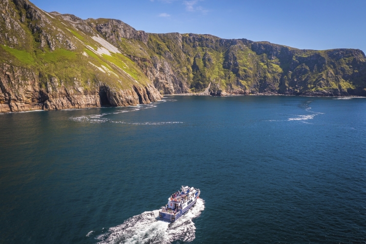 Ab Killybegs Harbour bietet die Familien-Reederei Atlantic Coastal Cruises Bootsfahrten zum Fuß der Steilklippen an. Sobald Sie den sicheren Hafen mit seinen zwei Leuchttürmen und der Bio-Lachsfarm hinter sich gelassen haben, bieten sich Ihnen fantastische Ausblicke auf die einzigartige Landschaft der Donegal Bay. Die Bootsfahrt führt vorbei an zahlreichen Felsvorsprüngen und geschützten Buchten, Höhlen und Wasserfällen, die alle ihre eigene Geschichte und Geheimnisse zu erzählen haben, sowie an einem Napoleonischen Turm hoch auf den Klippen.