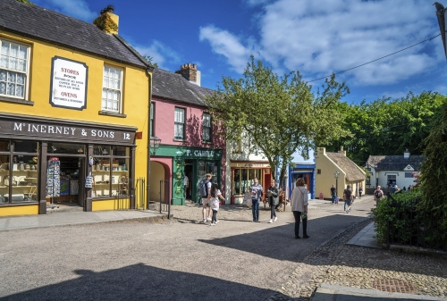 Der Bunratty Folk Park in der Grafschaft Clare befindet sich auf einem 26 Hektar großen Gelände inmitten unberührter Natur und bietet seinen Besuchern über 30 Gebäude in einem „lebendigen“ Freilichtmuseum in ländlicher Umgebung. Bauernhäuser, Dorfläden und Straßen wurden authentisch eingerichtet, um den unterschiedlichen sozialen Status der irischen Landbevölkerung im 19. Jahrhundert anschaulich zu dokumentieren - von der ärmsten Einzimmerwohnung bis hin zum Bunratty House, einem schönen Beispiel eines georgianischen Wohnhauses, das 1804 von den Studdarts, der letzten Familie, die Bunratty Castle bewohnte, errichtet wurde.