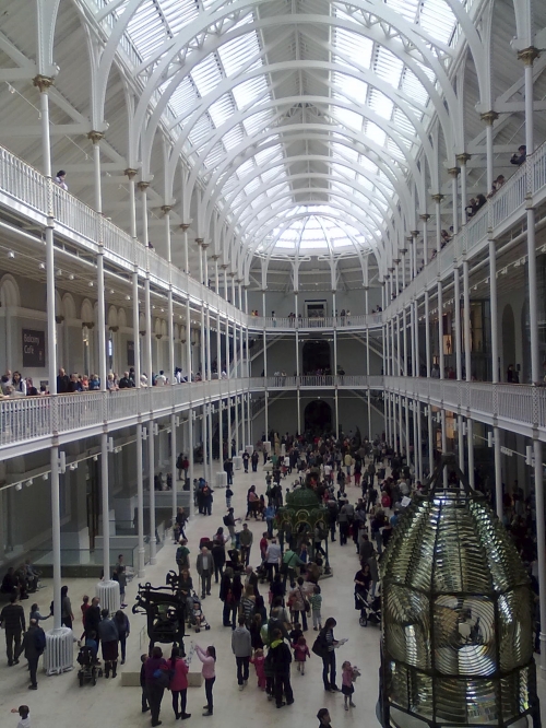 Das Nationalmuseum umfasst die Sammlungen des ehemaligen National Museum of Antiquities of Scotland. Neben den nationalen Sammlungen schottischer archäologischer Funde und mittelalterlicher Objekte enthält das Museum Artefakte aus der ganzen Welt, die Geologie, Archäologie, Naturgeschichte, Wissenschaft, Technik, Kunst und Weltkulturen umfassen. Die 16 neuen Galerien, die 2011 wiedereröffnet wurden, umfassen 8.000 Objekte, von denen 80 % zuvor nicht ausgestellt waren. Eines der bemerkenswertesten Ausstellungsstücke ist der ausgestopfte Körper von Dolly, dem Schaf, dem ersten erfolgreichen Klonen eines Säugetiers aus einer erwachsenen Zelle. Weitere Höhepunkte sind Ausstellungen über das alte Ägypten, einer der extravaganten Anzüge von Elton John, die Jean-Muir-Kostümsammlung und eine große kinetische Skulptur namens Millennium Clock. Eine schottische Erfindung, die sich bei Schulklassen großer Beliebtheit erfreut, ist die Scottish Maiden, eine frühe Enthauptungsmaschine aus der Zeit vor der Guillotine.