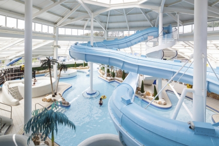Im Aquadome finden sich ein Freibad und ein Hallenbad, Sauna, Fitness Center, Dampfbad sowie die FlowRider Surfanlage.