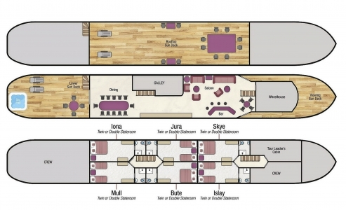 Das Design des Schiffes erinnert an jene Dampfer, die schon vor Jahrzehnten durch die schottischen Lochs fuhren. Die Landschaft, die originelle Unterkunft sowie das schottische Ambiente macht diese Kreuzfahrt zu einem außergewöhnlichen Erlebnis in einer der atemberaubendsten Gegenden Europas.