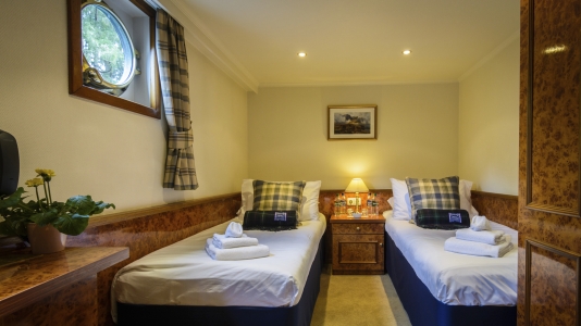 Die Spirit of Scotland verfügt über insgesamt 6 Deluxe en-suite Kabinen mit einer Größe von jeweils 12m², ausgestattet mit Zentralheizung/Air-Condition, TV und DVD-Player.