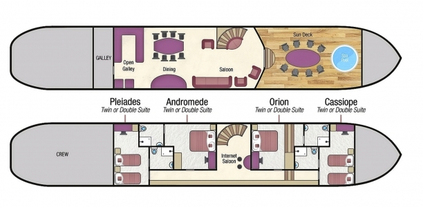 Die Enchanté verfügt über insgesamt 4 Ultra Deluxe en-suite Kabinen mit einer Größe von jeweils 15,3m² und sind allesamt mit Zentralheizung/Air-Condition ausgestattet.