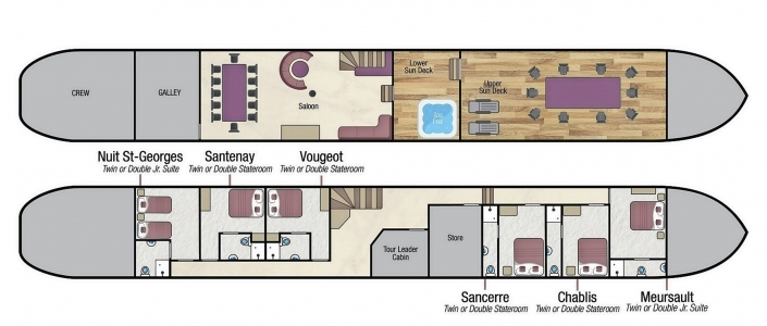 Die "La Belle Epoque" erfüllt all Ihre Vorstellungen von einer charmanten Bootsunterkunft durch eine ebenso charmante Region. Das Flusskreuzfahrtschiff ist mit geräumigen ensuite Kabinen, einer Bar und einem eleganten Speisezimmer mit luxuriösen Möbeln ausgestattet. An Deck lädt ein Pool zum Entspannen ein. Neben dem unvergleichlichen Gefühl durch das wunderschöne Burgund zu gleiten, bieten sich Ihnen vielseitige Möglichkeiten, ein Frankreich zu erleben, das Sie bisher noch nicht kannten.