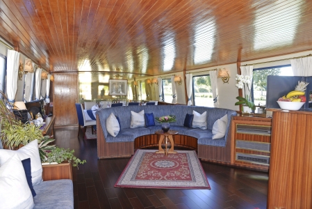 Das elegant gestaltete Schiff besticht mit einem holzgetäfelten Salon/Esszimmer mit maßgefertigten Sitzmöbeln. Der Außenbereich bietet ein Hot Tub sowie ein Sonnendeck, auf welchem bei schönem Wetter die Mahlzeiten werden.