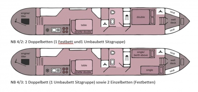 NB 8/4: 3 Doppelbetten (2 Festbetten und1 Umbaubett Sitzgruppe) sowie ein ausklappbares Einzelbett)
