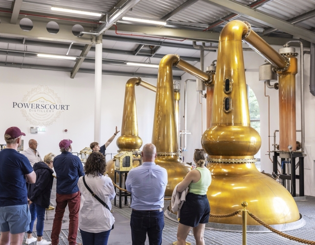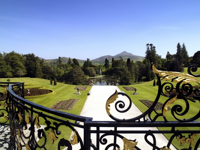 Die Powerscourt Estates liegen am Fuße des 501 m hohen Sugar Loaf Mountain nahe der Ortschaft Enniskerry und sind zusammen mit den Powerscourt Gärten (irisch Eastát Chúirt an Phaoraigh) ein weiteres Highlight im County Wicklow. Die 19 Hektar großen Gartenanlage mit dem höchstem Wasserfall Irlands, sowie Kuriositäten wie zum Beispiel der Haustierfriedhof können von Besuchern erkundet werden. Das aus dem 18. Jahrhundert stammende Anwesen wurde von dem deutschen Architekten Richard Cassels entworfen. Inspiriert durch Besuche in Palästen und Anwesen in Europa dekorierte Lord Powerscourt den Garten mit europäischen Artefakten, wie zum Beispiel mit dem 240 Jahre alten Bamberg Gate. Im Avoca Café können sich die Besucher nach ihrem Spaziergang durch die Gärten und über das Anwesen erfrischen und eine kleine Stärkung zu sich nehmen, nachdem Sie auch die atemberaubenden Blicke auf das County Wicklow genossen haben. Seit neuem beheimatet das Anwesen auch eine Whiskey-Distillery.