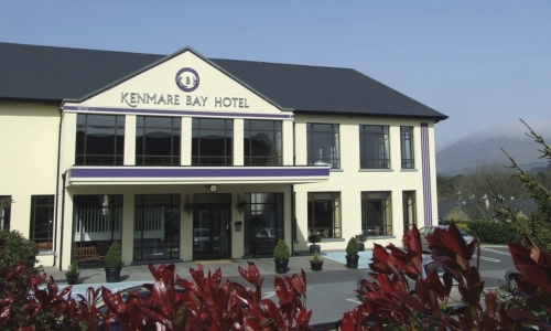 Unterbringung im Kenmare Bay Hotel in Kenmare. Das Hotel liegt am Rand des hübschen, kleinen Städtchens in einer der schönsten Ecken des Wild Atlantic Ways. Das schöne Restaurant, eine gemütliche Bar mit Außenbereich und ein großes Hallenbad mit Sauna und Whirpool laden zum Verweilen und Entspannen ein. Die farbenfrohen Häuser der bunten Küstenstadt Kenmare bilden den Kontrast zum dunklen Blau des Atlantiks und zum dunklen Grün der Kerry Berge.