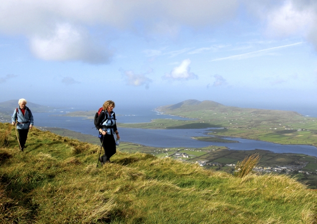 Von der Spitze der Halbinsel Beara, nur einen Steinwurf entfernt von Dursey Island, beginnen die heutigen Wanderungen an der Küste mit herrlichem Blick nördlich entlang der gesamten irischen Küste auf die Insel Skellig und Scaffif und darüber hinaus auf den Atlantik. Hier können Sie den Ballydonegan Strand genießen, der bekannt ist für seinen Quarzsand, der aus stillgelegten Kupferminen ausgespült wurde. Beide Gruppen treffen sich in der alten Kupferminenstadt Allihies für eine erfrischende Rast. Leichte Wanderung: 9,5km/Aufstieg 300m. Anspruchsvolle Wanderung: 13km/ Auftsieg 450m